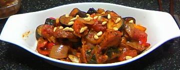 それとラタトゥーユ。2種類のトマトとタマネギ、ズッキーニ、ニンジン、ナスにパプリカ。仕上げに松の実をパラパラっと。